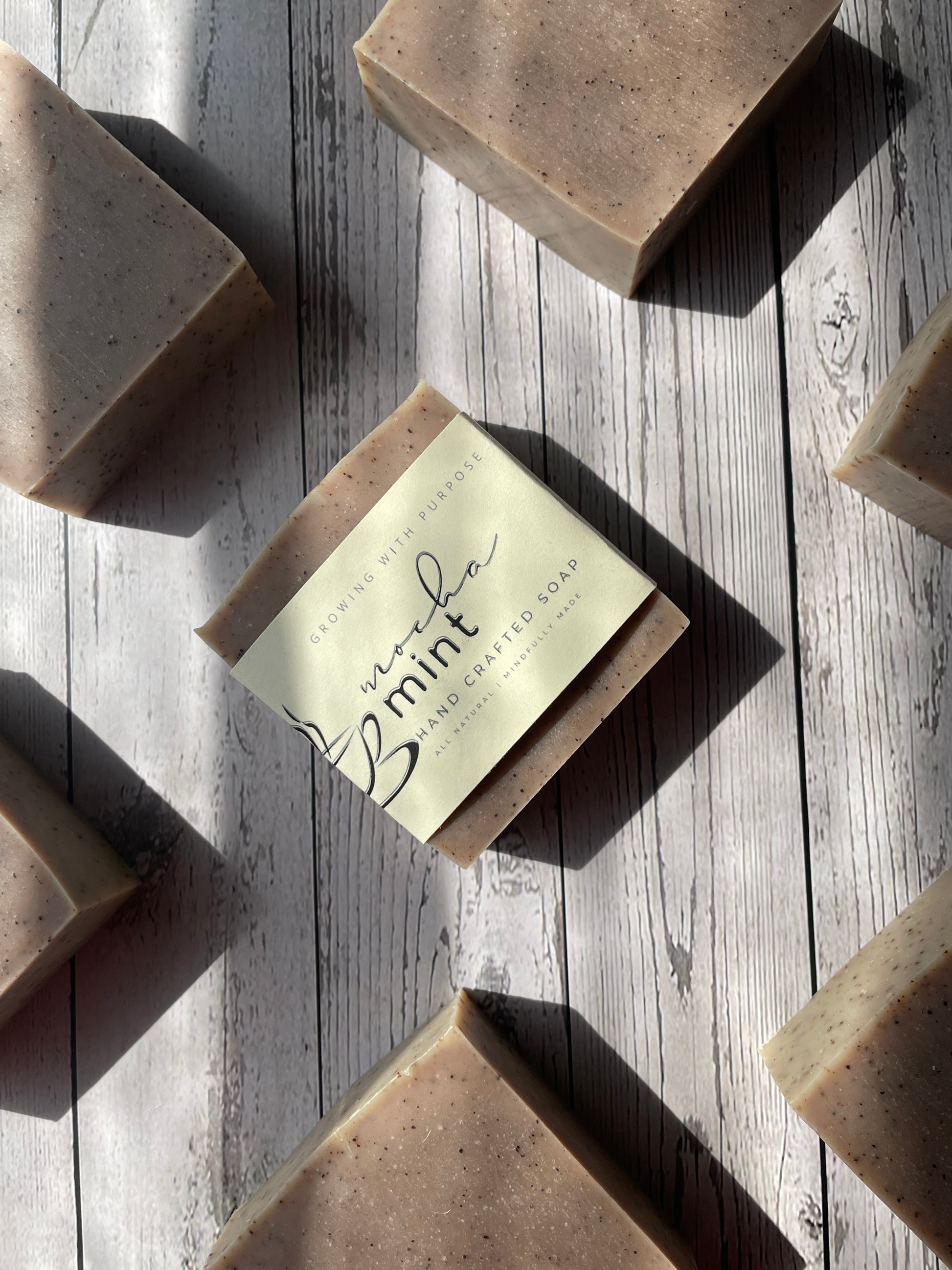Indulge in the invigorating scent of our Peppermint Mocha Soap. Crafted from a blend of nourishing ingredients, including olive oil, coconut oil, shea butter, almond oil, and castor oil, this soap pampers your skin with moisture.