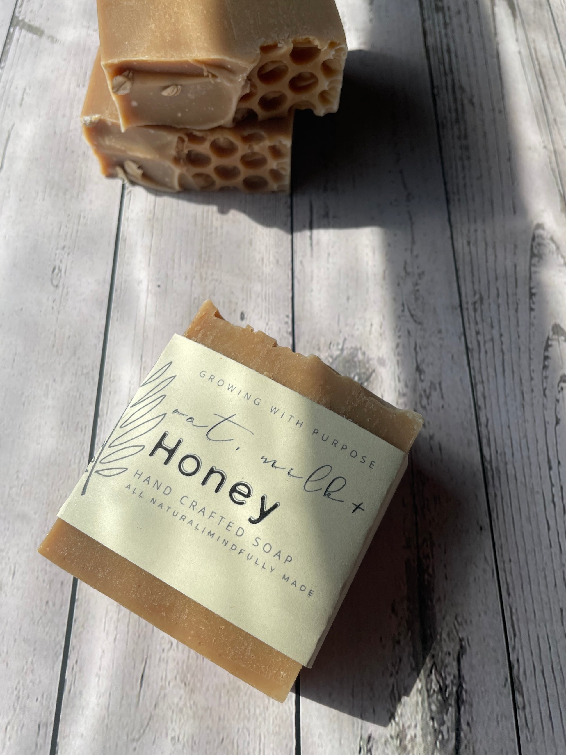 The main ingredients of this cold processed soap are oats, honey, and coconut oil. Honey being the standout ingredient naturally colors the bar, and oats are used for as a gentle exfoliant. Our all natural and handmade soap is free from toxins, dyes, and fragrance.
