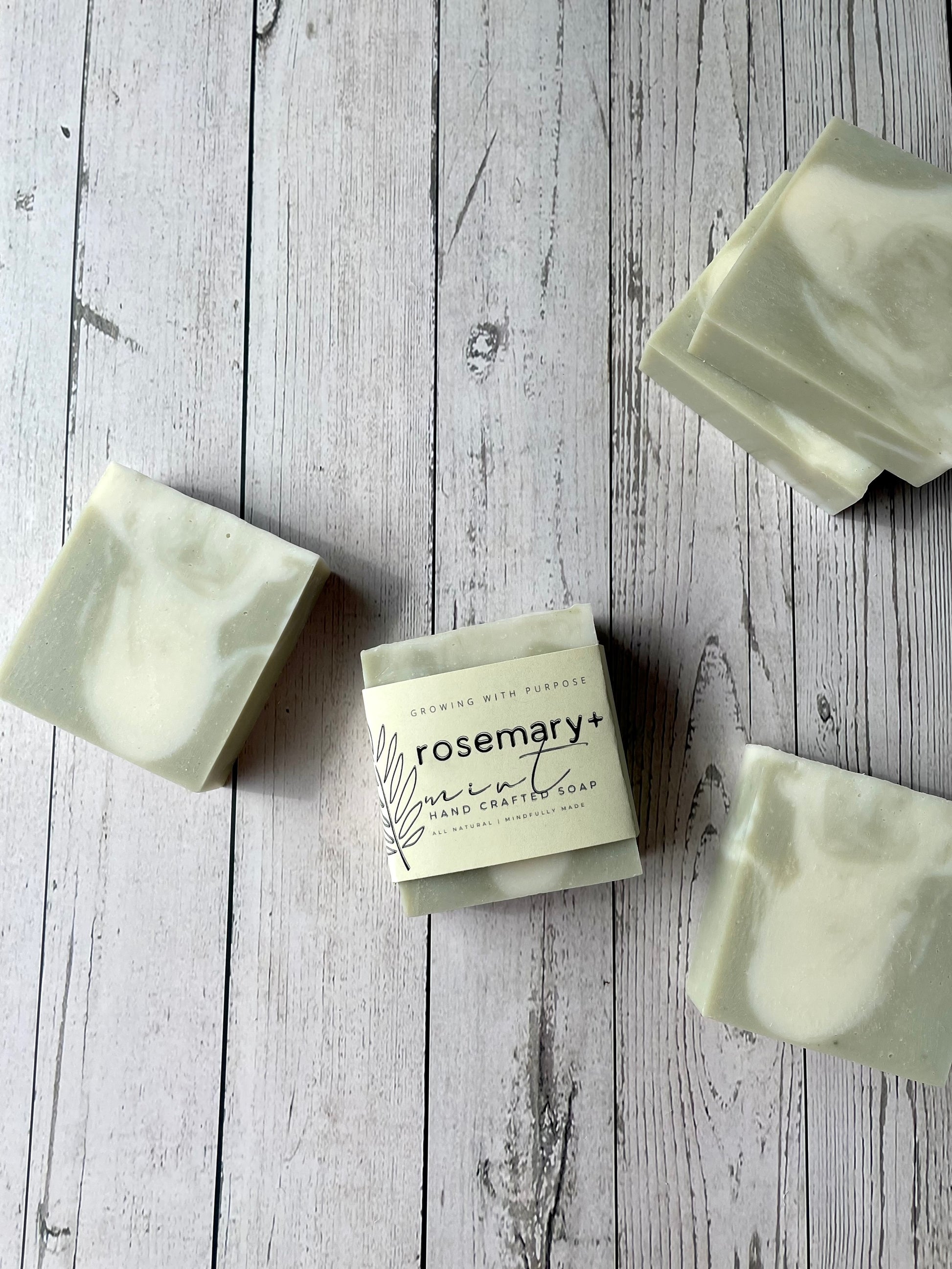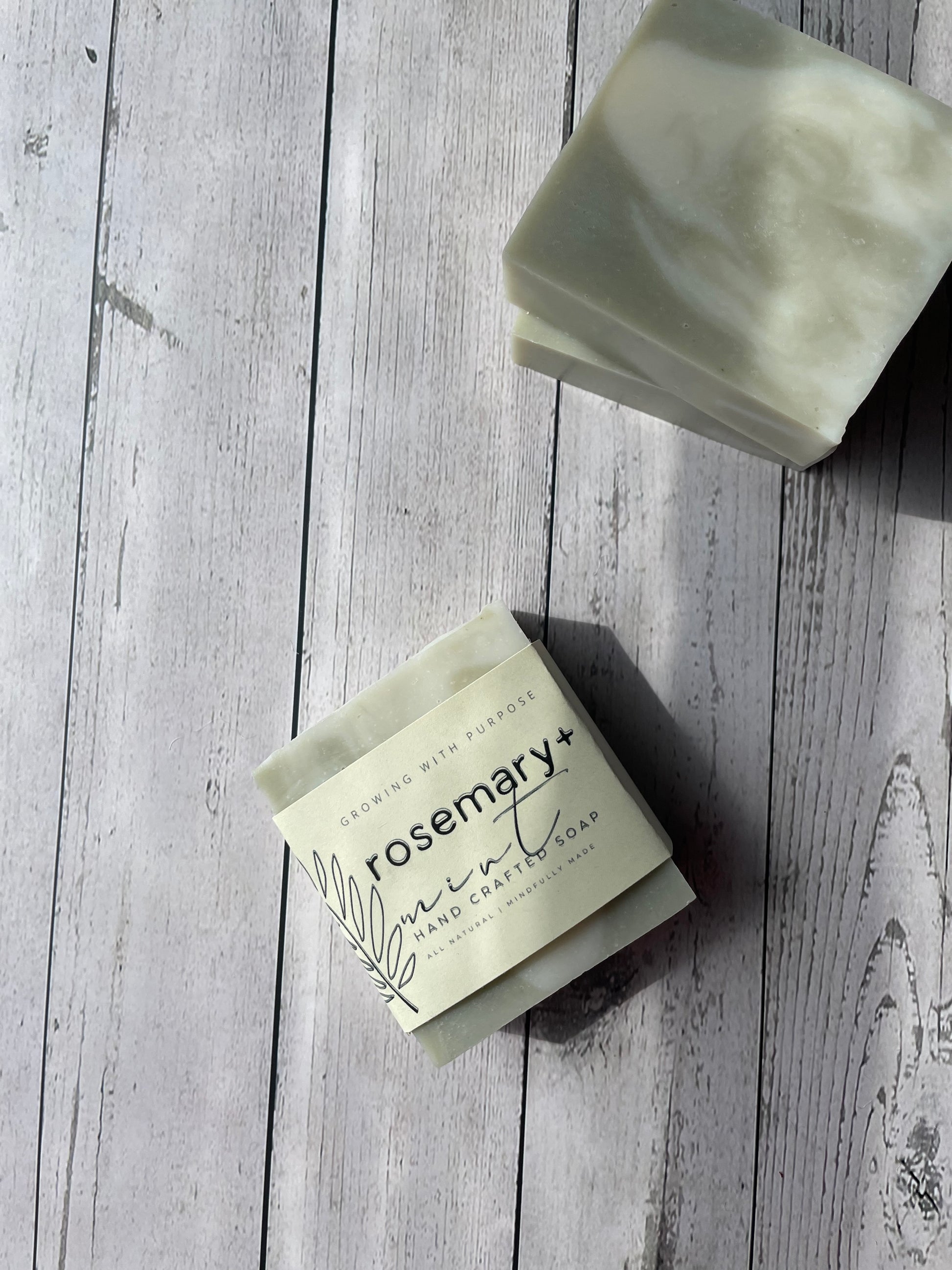Elevate your bathing experience with our Rosemary Mint Soap. Crafted with care, this soap is a fusion of nature's goodness, including olive oil, coconut oil, shea butter, almond oil, castor oil, and a unique blend of rosemary and peppermint essential oils.